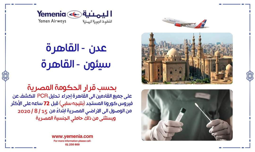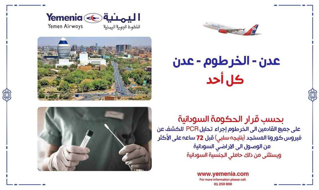 اصدرت الخصوص الجوية اليمنية تعميما للمسافرين الى مصر والسودان جاء فيه: