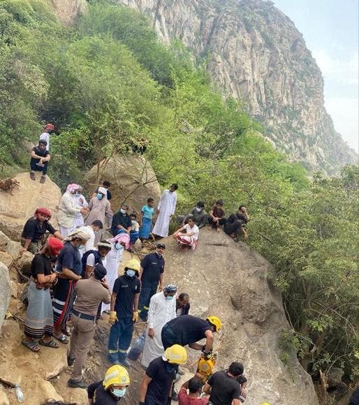 انتشرت صورة في مواقع التواصل الاجتماعي لعشرات السعوديين في أحدى المناطق السعودية جازان وهم يرتدون الزي اليمني الاصيل والشعبي وأوضحت الصورة محاولة الناس انتشال جثث أربعة اشخاص سقطت عليهم صخرة كبيرة ،وهم في داخل سيارتهم وأكدت أن الدفاع المدني السعودي بالعارضة بمنطقة جازان، من إخراج جثث 4 أشخاص بعد سقوط مركبتهم أسفل صخور كبيرة في منحنى جبلي، وذلك بالتنسيق مع إدارة الطرق بالمنطقة وبمساعدة المواطنين.