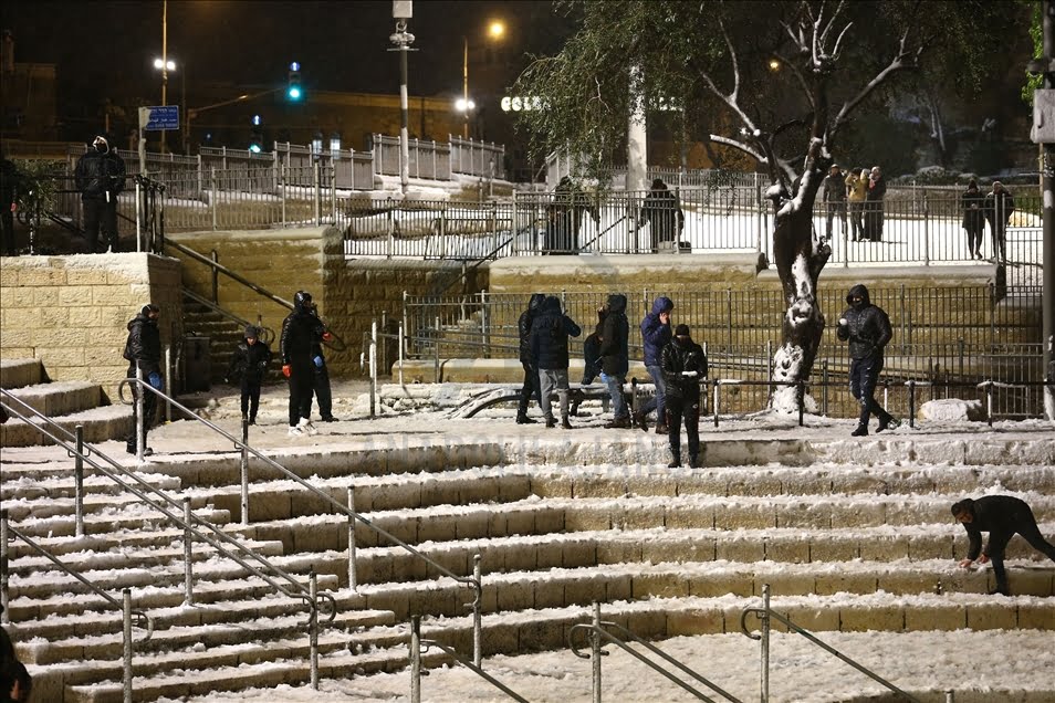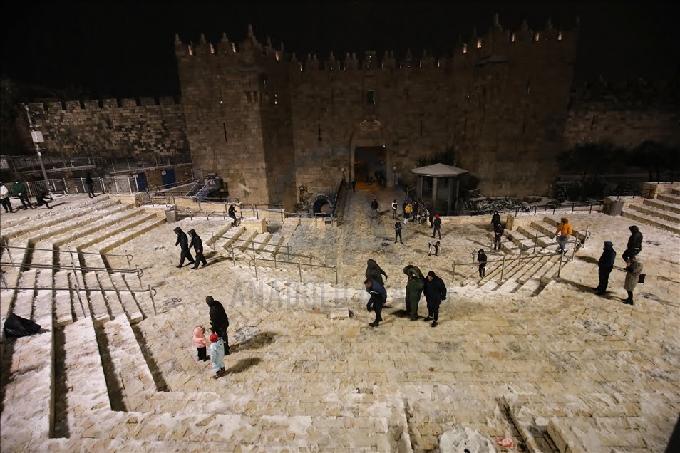 ونزل أهل القدس إلى الشوارع في وقت متأخر من الليل، متحمسين لرؤية الثلوج أول مرة هذا الموسم.