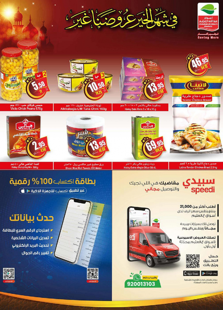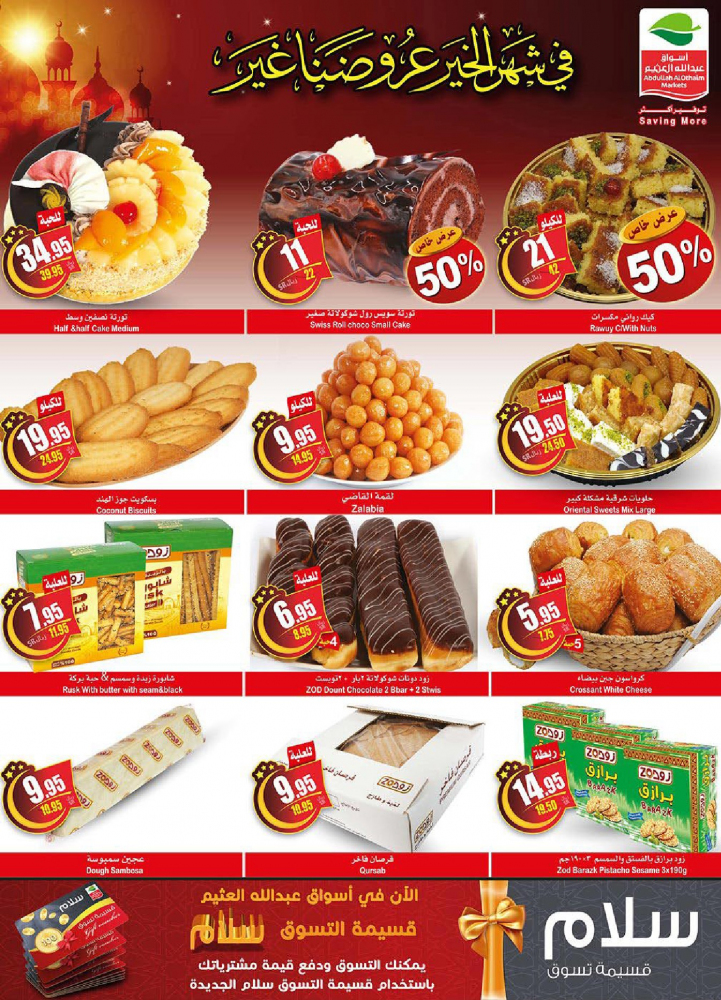 كما تعد عروض العثيم من العروض التي تضم العديد ن المنتجات الرائعه حيث توفر لعملائها كافه العروض علي المنتجات التي يجتاحها كل بيت بتخفيضات كبيره علي المعلبات مثل الحلاوة و الفول والتونه وصلصة الطماطم والأسماك وأيضا المكرونه وجميع الخضروات وتوفر جميع المستلزمات المنزليه أبضا في عروض العثيم الأسبوعية والأجهزة الإلكترونية من شاشات وغيرها