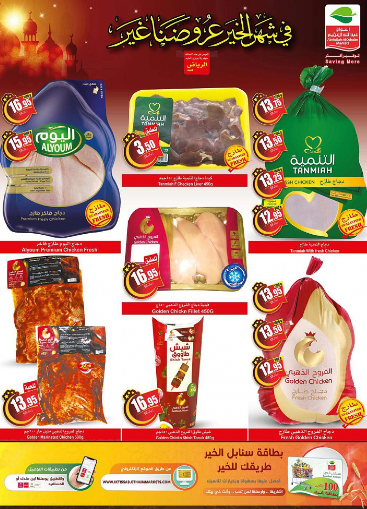 هناك العديد من العروض المقدمة علي المنتجات المختلفة حيث تقدم عروض العثيم الأسبوعية تخفيضات علي منتجاتها الغذائية من لحوم ودواجن واسماك وأيضا تقدم تخفيضات علي جميع الفواكه والخضروات وعلي جميع أنواع التمر والمشروبات بمناسبه اقتراب شهر رمضان الكريم والعديد من التخفيضات الأخري عبر منتجاتها وسوف اعرض لكم مجله عروض العثيم علي اهم المنتجات المقدمة والتي تحظي بتخفيضات كبيره من اليوم وحتي نهاية الأسبوع.
