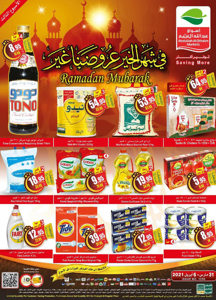 نقدم لكم من خلال موقع ثقفني عروض العثيم الأسبوعية 31 مارس 2021 الموافق 18 شعبان 1442 ه حيث تعد من افضل العروض في المملكة العربية السعودية ويبحث عليها الكثير من الأشخاص حيث تقدم تخفيضات وخصومات تصل الي 50% بمناسبه شهر الخير  في أسواقها وفروعها في جميع مدن السعودية لذالك هناك إقبال من المواطنين حول معرفه العروض الأسبوعية المقدمة كي يستفيدوا من الخصومات بمناسبه شهر رمضان.