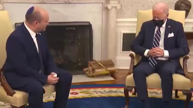 وأظهر مقطع فيديو حظي على انتشار واسع في مواقع التواصل الاجتماعي، “بادين” وهو نائم خلال لقائه مع “بينيت”، فيما كان الأخير يتحدث باستطراد.