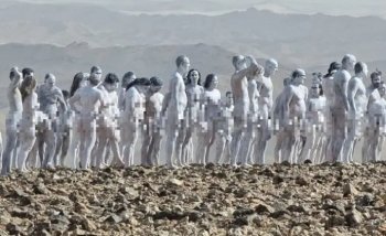 وتابع انه قرر تلطيخ أجساد الناس العراة باللون الأبيض لتمثيل أعمدة الملح من القصة التوراتية لزوجة لوط، شخصية سفر التكوين التي تحولت إلى عمود ملح عندما نظرت إلى سدوم، المدينة القديمة التي كانت في منطقة البحر الميت (حسب قوله) .