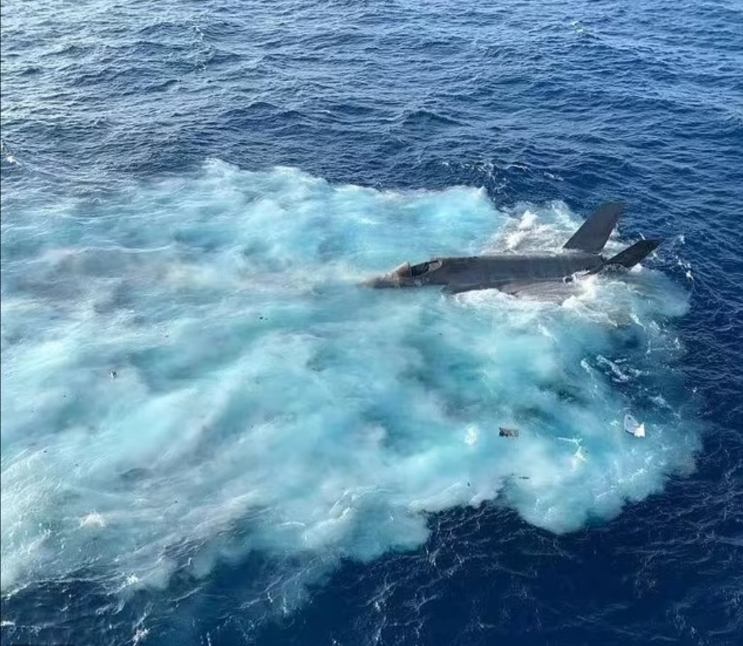 أظهر مقطع فيديو وصورة لحظة تحطم طائرة مقاتلة شبحية من طراز F-35 تابعة للبحرية الأمريكية بقيمة 100 مليون دولار في بحر الصين  الجنوبي يوم الاثنين بعد “حادث هبوط”.