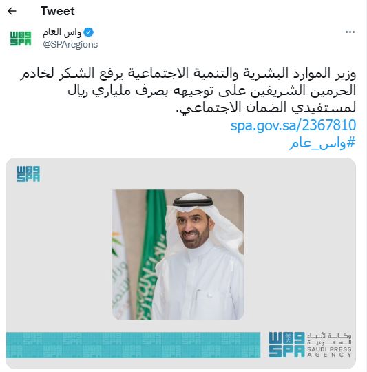 بعد صدور الأوامر الملكية من خادم الحرمين الشريفين الملك سلمان بن عبد العزيز، بصرف 2 مليار ريال لمستفيدي الضمان الاجتماعي المطور، أعلن المتحدث الرسمي باسم وزارة الموارد البشرية سعد آل حماد، على صفحته الرسمية على موقع “تويتر” عن آلية الصرف، حيث أوضح آل حماد أن الصرف سوف يكون بواقع معاشاً إضافياً لمرة واحدة لمستفيدي الضمان الاجتماعي، وسوف يشمل كل مستفيدي الضمان الاجتماعي السابق والمطور، وجاءت الأوامر الملكية بعد الاطلاع على تقرير ولي العهد الأمير محمد بن سلمان، عن التداعيات الاقتصادية العالمية وتأثيرها على الأسعار، وضرورة تقديم يد العون من المملكة لمواطنيها المستحقين للمساعدة المالية، فصدرت حزمة من الأوامر الملكية كان من ضمنها تخصيص 2 مليار ريال لمستفيدي الضمان الاجتماعي المطور.