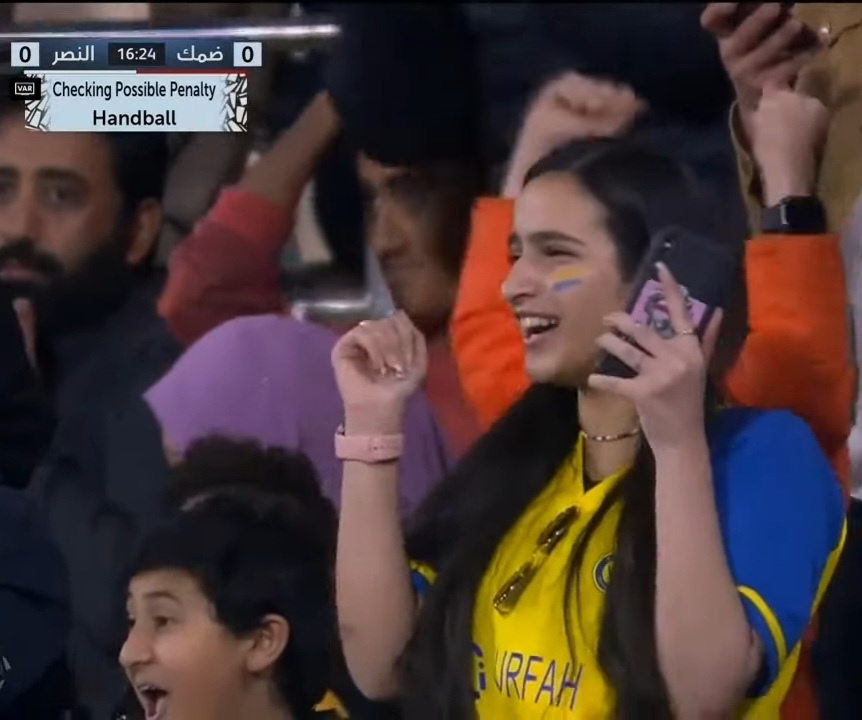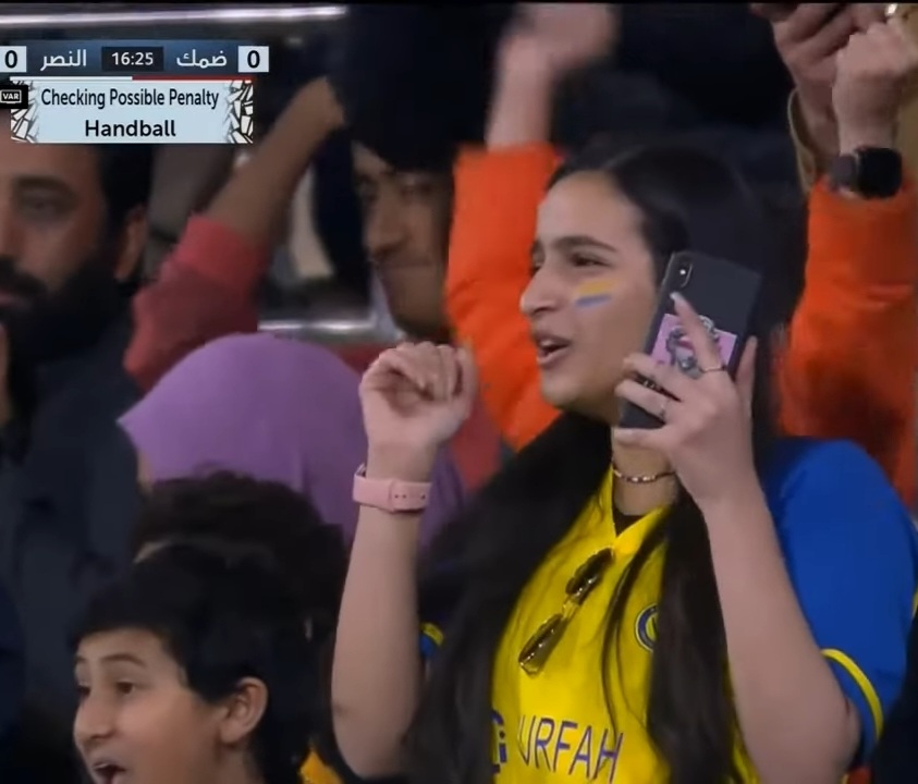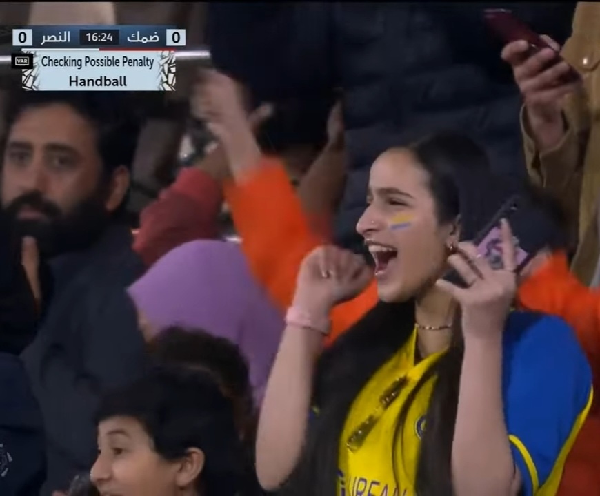 الفتاة الحسناء مشجعة النصر التي ظهرت في مدرجات الملعب مساء اليوم تحمل فنيلة رقم كرستيانو رونالدو هي حنان الزهراني.