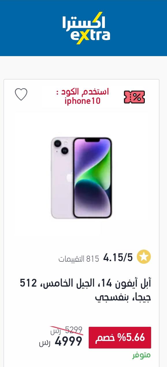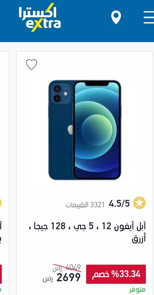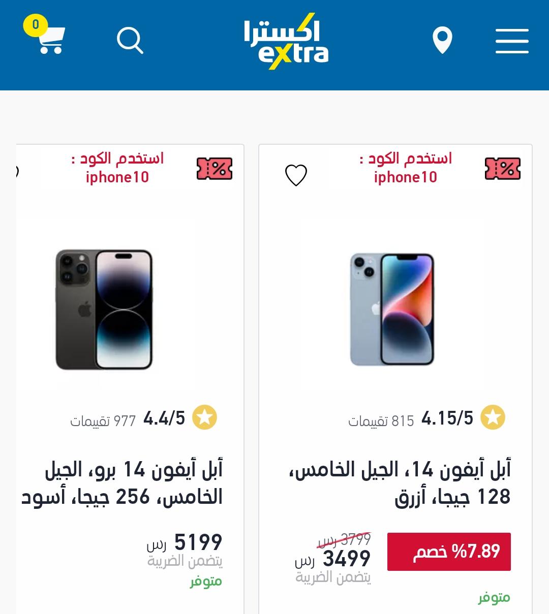 كما متوفر هاتف ابل آيفون 11 ذات لون أبيض بسعة تخزين 128 جيجابايت وبذاكرة داخلية 4 جيجابايت رام، يباع الآن بداخل اكسترا بسعر 1.999 ريال سعودي بعد أن كان سعره 3,559 ريال سعودي.