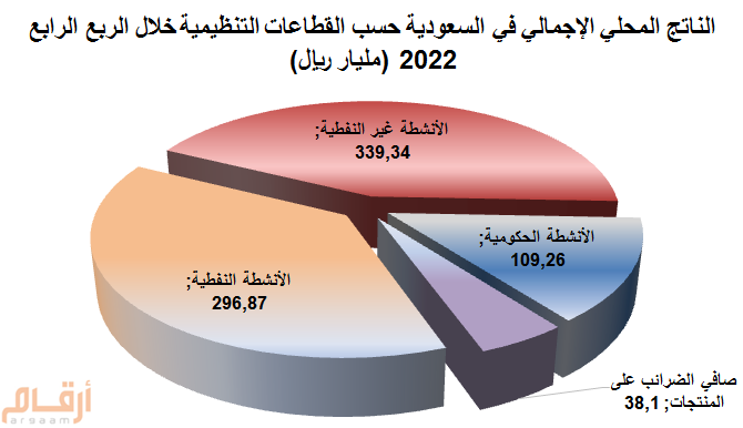 وفيما يلي جدول يوضح الناتج المحلي الإجمالي في السعودية حسب القطاعات التنظيمية بالأسعار الثابتة خلال الربع الرابع 2022:
