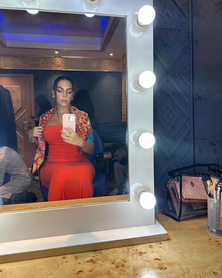 وشاركت جورجينا إطلالتها عبر حسابها الخاص في إنستغرام، كما نشرت أيضا صورة لقطة، وكذلك موقع التصوير من المدينة الإعلامية في الرياض.