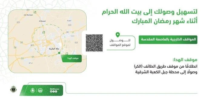 وبيّنت الإدارة أن خيارات الوصول للحرم المكي خلال رمضان تتضمن المواقف الخارجية للعاصمة المقدسة من خلال نقل ركاب السيارات المتوقفة فيها إلى المحطات الداخلية، ثم يستمرون بالسير وصولاً للحرم، وكذلك موقف جدة السريع انطلاقاً من موقف الشميسي وصولاً إلى محطة طريق الأمير متعب.