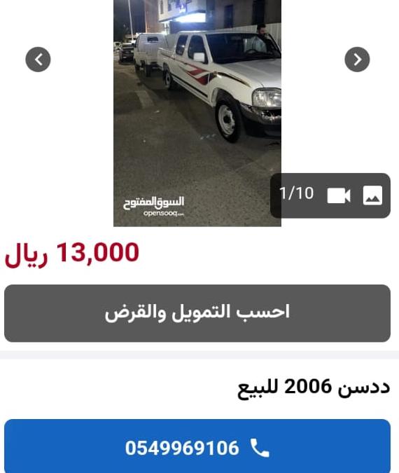 للبيع سيارة نيسان داتسون سنة الصنع 2006 مستعملة للبيع في مدينة الطائف حي القيم الأعلى بسعر 13000 ريال سعودي.