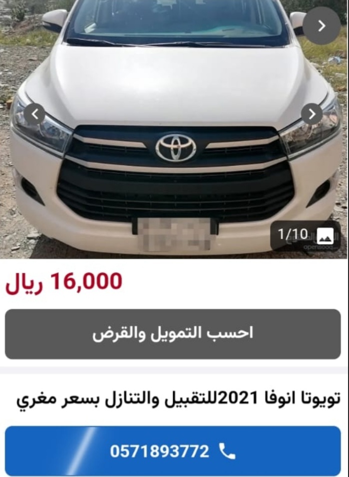 للتنازل بسعر مغري سيارة تويوتا أنوفا سنة الصنع 2021