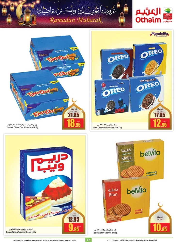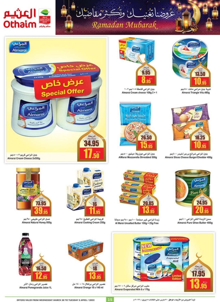 تشمل عروض العثيم صينيه الفرن وقدر كاسا وقدر ضغط كهرائي وأيضا ترموس وحافظه مياه وشنطه للسفر كما تحتوي علي جميع أنواع الحلويات الشرقية أيضا حيث تقدم في مجله عروضها التي نقدمها لكم كنافة بالمانجا وايضا كنافه بالشوكلاته وكنافه بالقشطه وقطايف بالمكسرات التي يعشقها الجميع وبلح الشام أيضا حيث يمكن لكم الاستفادة من عروض العثيم الأسبوعية من خلال الذهاب لأقرب فرع من فروع عبدلله العثيم.